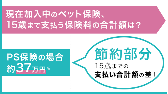 0歳から15歳まで保険料を払った時、ペット保険会社によってその支払い合計額に大きく差が開く場合があります。この差が節約部分です。