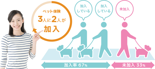 ペット情報サイト「ペットタイムズ」が行ったペットオーナーを対象としたアンケート調査※1によると、実に67%もの人がペット保険に加入しているという結果になりました。