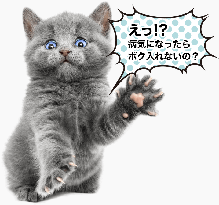 ※獣医師により、既に発見されている先天性疾患や治療中の病気、怪我や予防措置については補償対象外となります。詳細は、約款及び重要事項説明書をご覧ください。